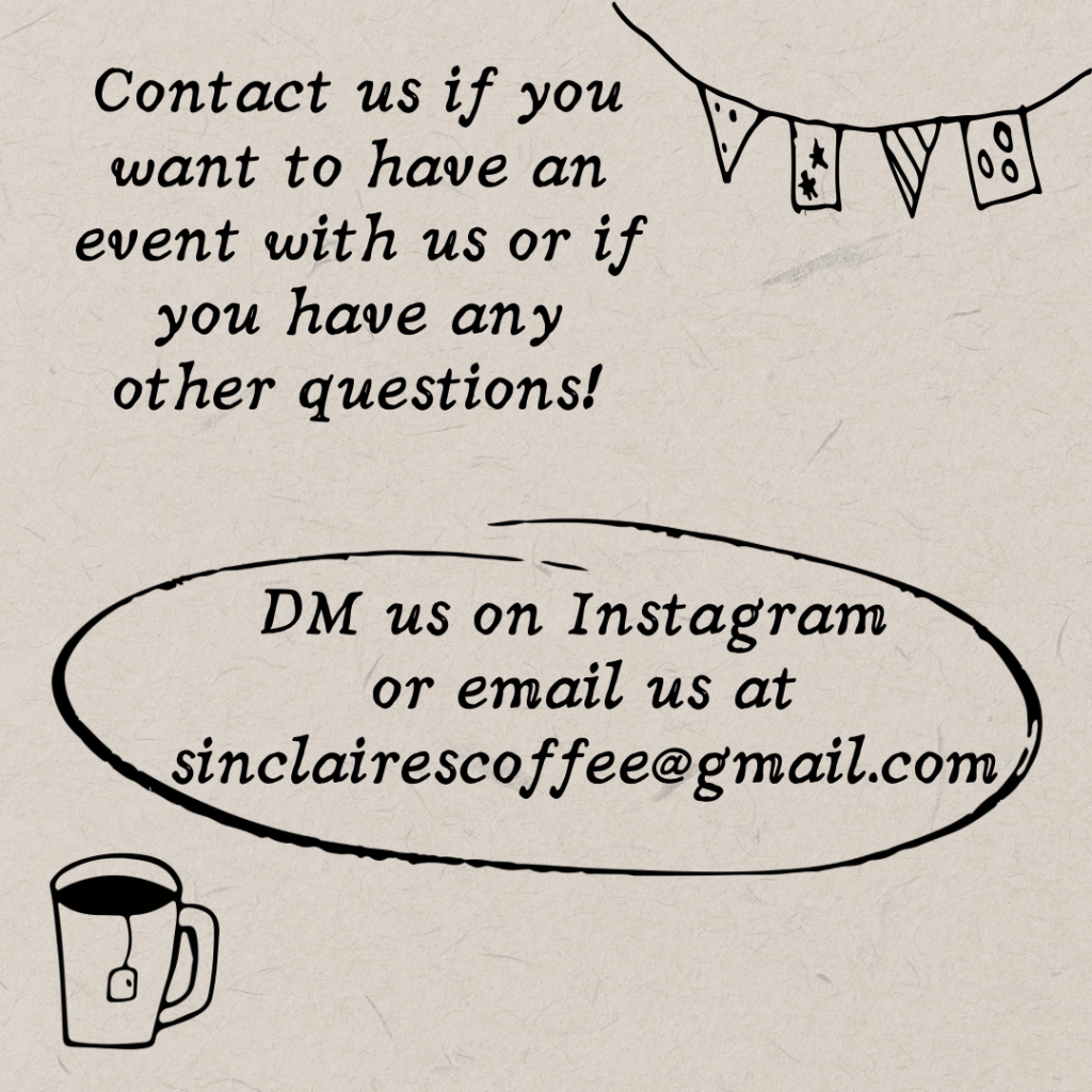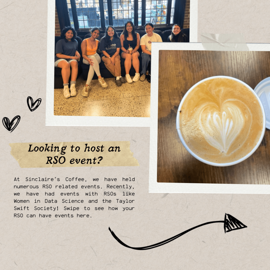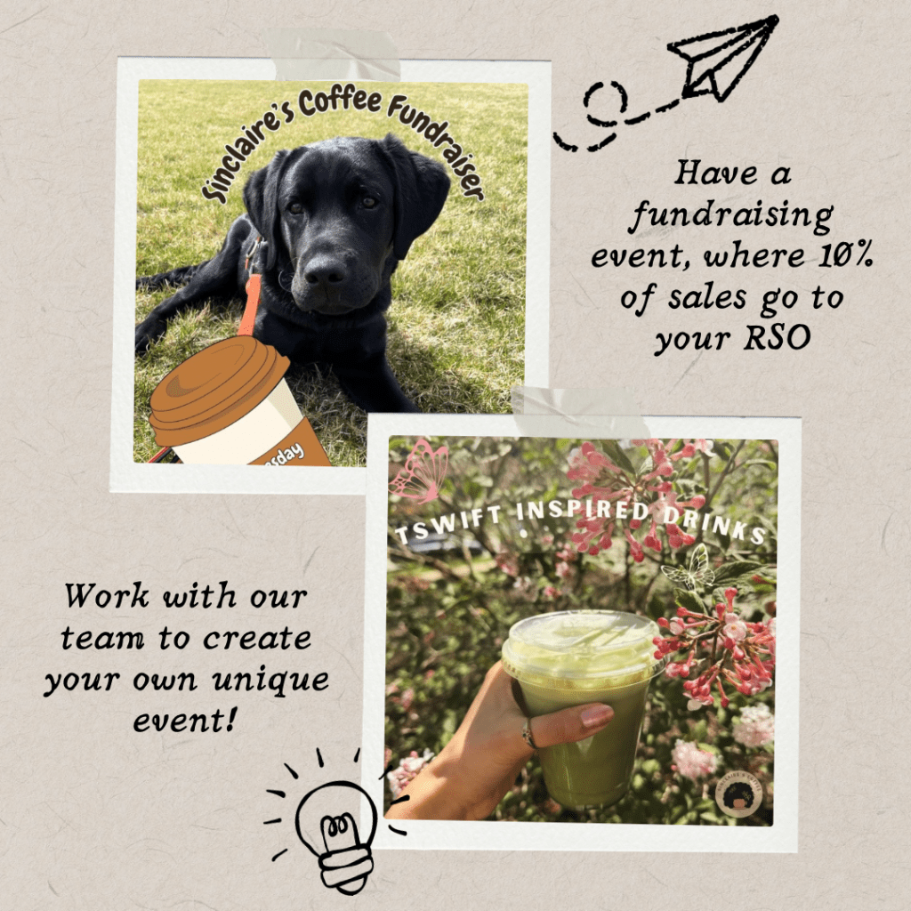 Sinclaire’s Coffee has hosted a number of events that have been centered around the local community. We have partnered with many RSO’s at UIUC such as IBC, Women in Data Science, and the Illini Service Dogs. We want everyone to have the ability to work with us on these events, so that we can customize to your needs! Please contact us if you would like more information!